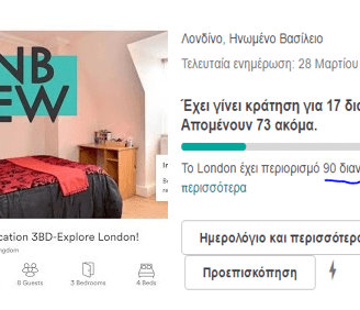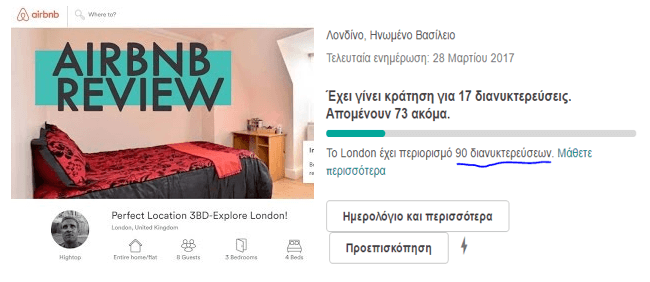 Να επισημάνουμε εδώ ότι το όριο των 90ημερών δεν είναι κάτι καινούργιο. Στο Λονδίνο για παράδειγμα όπου και η smartbnb λειτουργεί τα τελευταία χρόνια υπάρχει όριο 90 ημερών το οποίο τηρείται από την ίδια την Airbnb.